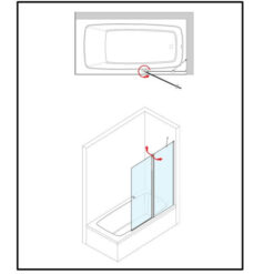 אמבטיון שחור עם דופן קבועה ודלת הנפתחת פנימה והחוצה 120 ס"מ.