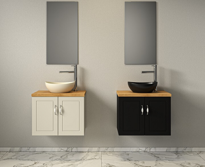 בוצ'ר עץ + כיור מונח לבן מבריק 40*33 ס"מ