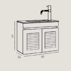 ארון אמבטיה תלוי בגימור עץ מלא, בעומק צר 30 ס"מ, רוחב 60 ס"מ וגובה 45 ס"מ. שרטוט מצורף.