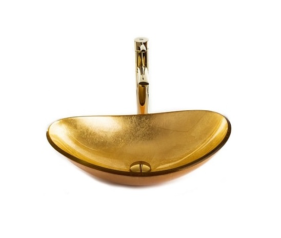 כיור זזכוכית מונח 54*36 ס"מ גוון זהב מקומט
