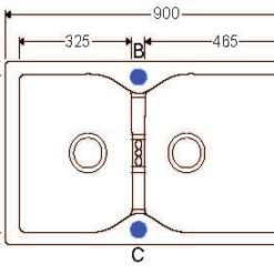 כיור שוני מחולק – כיור ראשי ברוחב 46.5 ס"מ וכיור משני ברוחב 32.5 ס"מ.