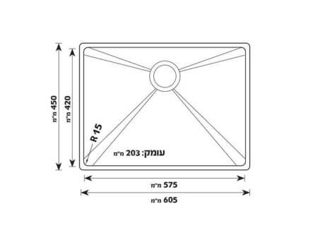 מידות: רוחב 60.5 ס"מ, עומק 45 ס"מ, גובה 20.3 ס"מ. פרטים נוספים בשרטוט.