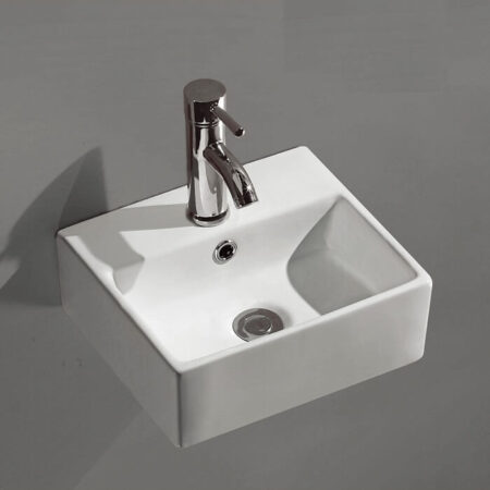 כיור מרובע מעוצב, עם במה וחור לברז.