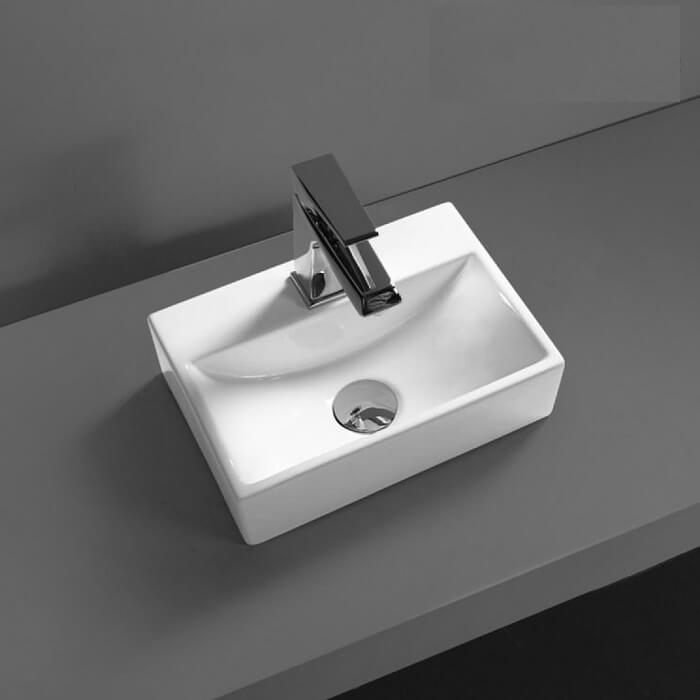 כיור מלבני מעוצב, עם במה וחור לברז.