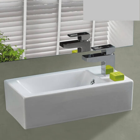 כיור מלבני מעוצב, עם במה וחור לברז.
