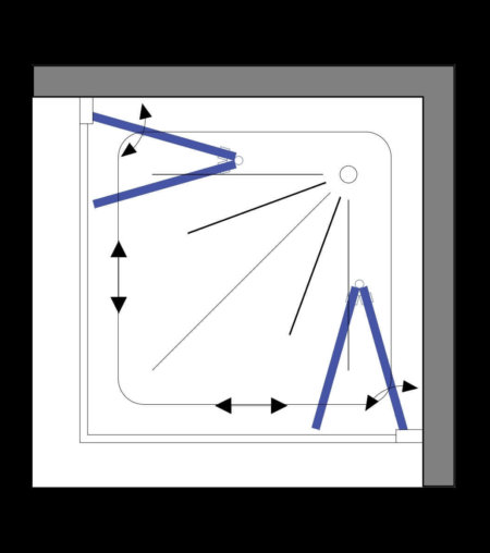 מקלחון פינתי שתי דלתות מתקפלות אקורדיון (הרמוניקה). הדלתות מתקפלות ונצמדות עד הקיר.