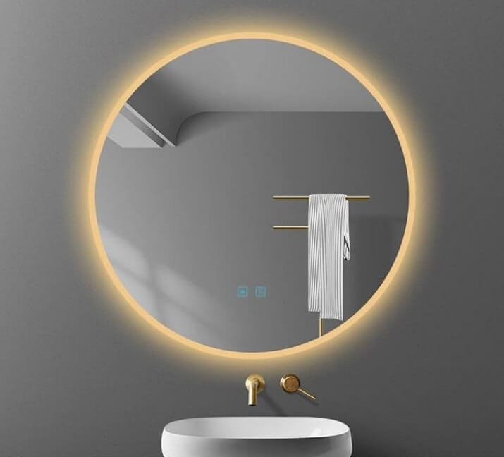 מראה עגולה תאורת לד כולל רמקולים ומפיג אדים